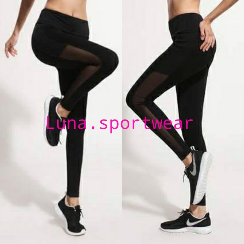 Forever 21 Black Panel Mesh Legging Shopee Indonesia