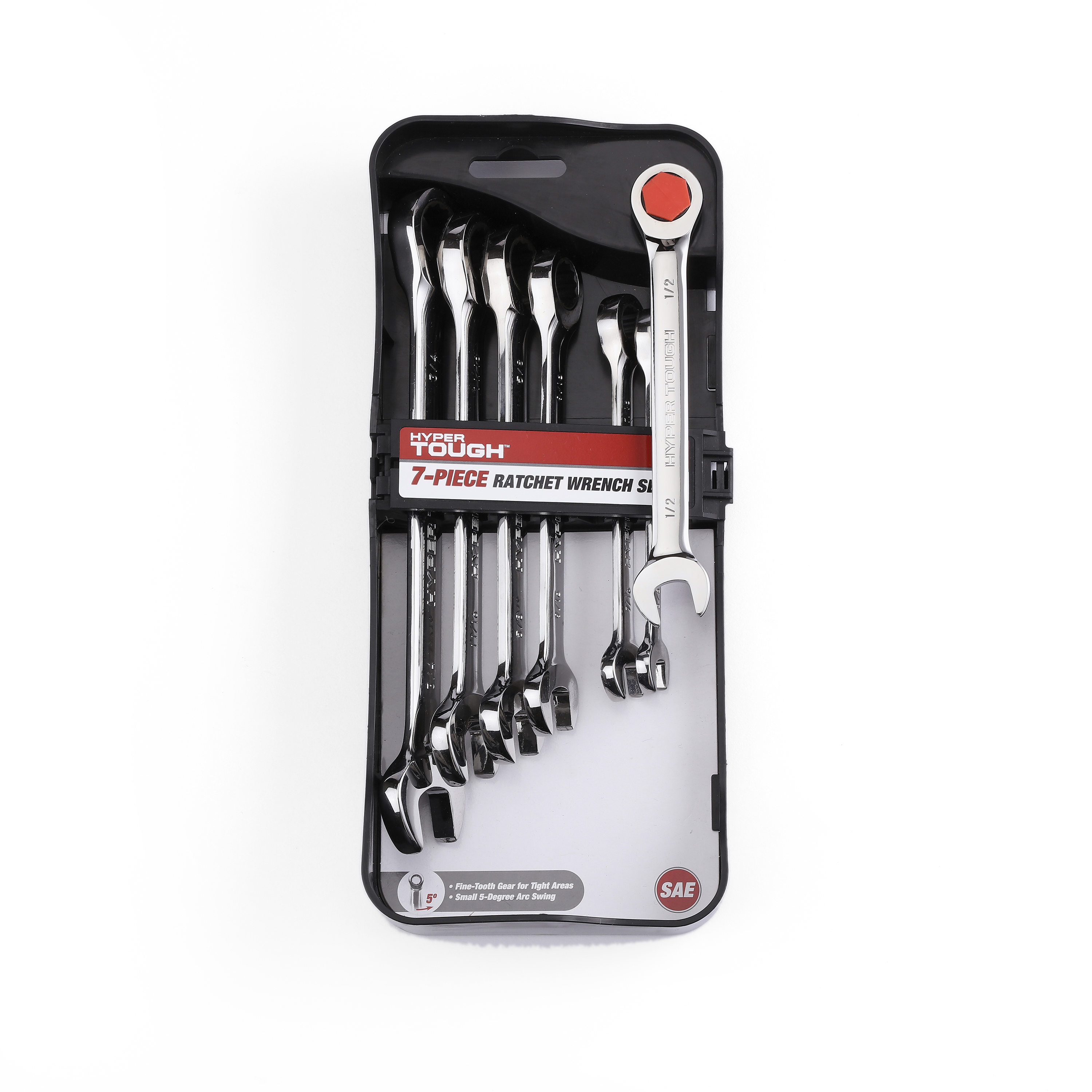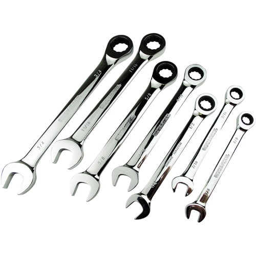 Hyper Tough 7-Piece SAE Chrome Vanadium Ratcheting Wrench Set. 38-inch 716-inch 12-inch 916-inch 58-inch 1116-inch and 34-inch. The included wrenches are ideal and simple tools for home and auto repairs on the go.