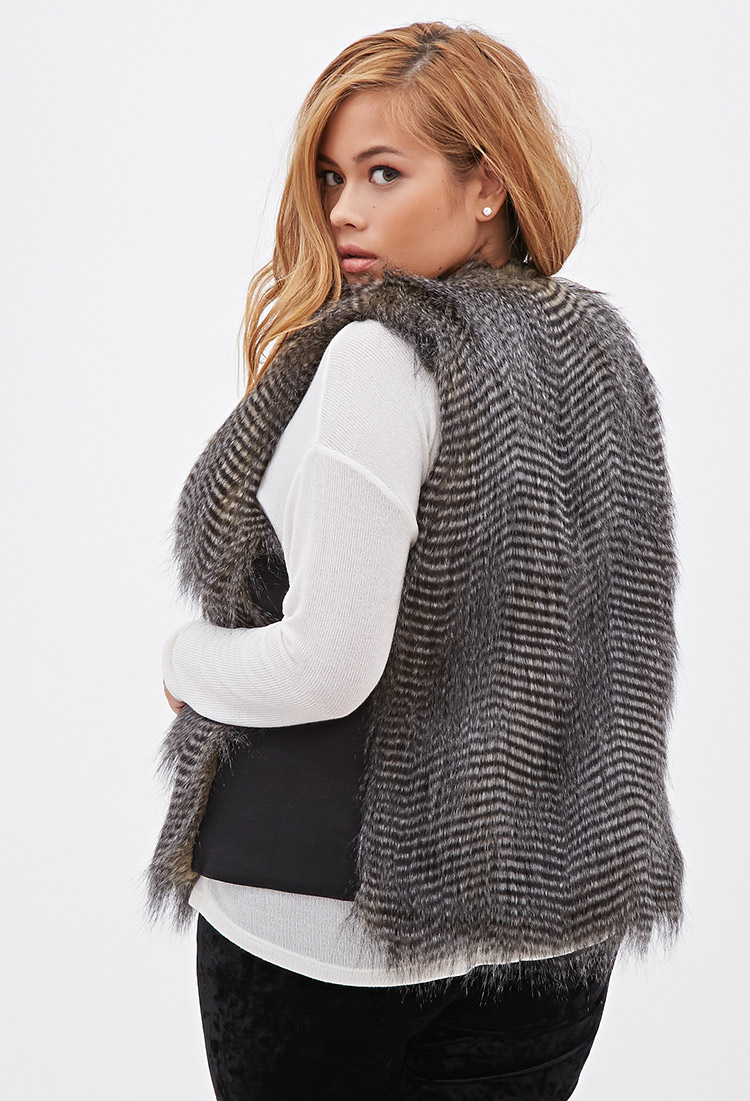 Get the best deals on FOREVER 21 Womens Plus Size Coats Jackets Vests for Women. Black Pleather Moto with Belt Small Vest Size 4 S US 4 S Est. It was a black and white striped faux fur vest from Forever 21 Plus.