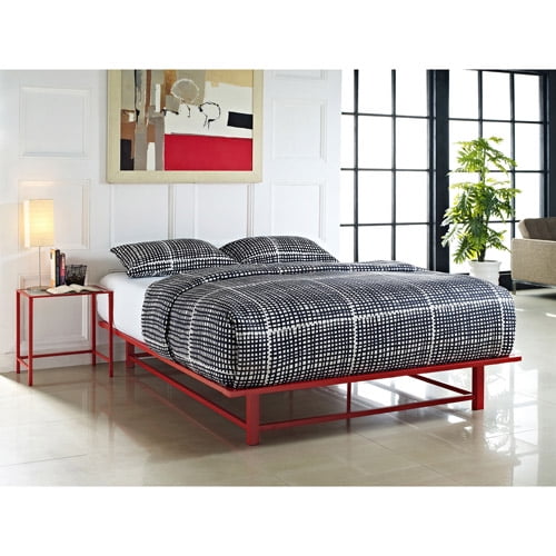 Feb 25 2014 - Free 2-day shipping. Parsons Queen Metal Ledge Platform Bed and Nightstand Set Red. The Faith Metal Platform Bed Frame has a coated black finish with a unique timeless windowpane design.