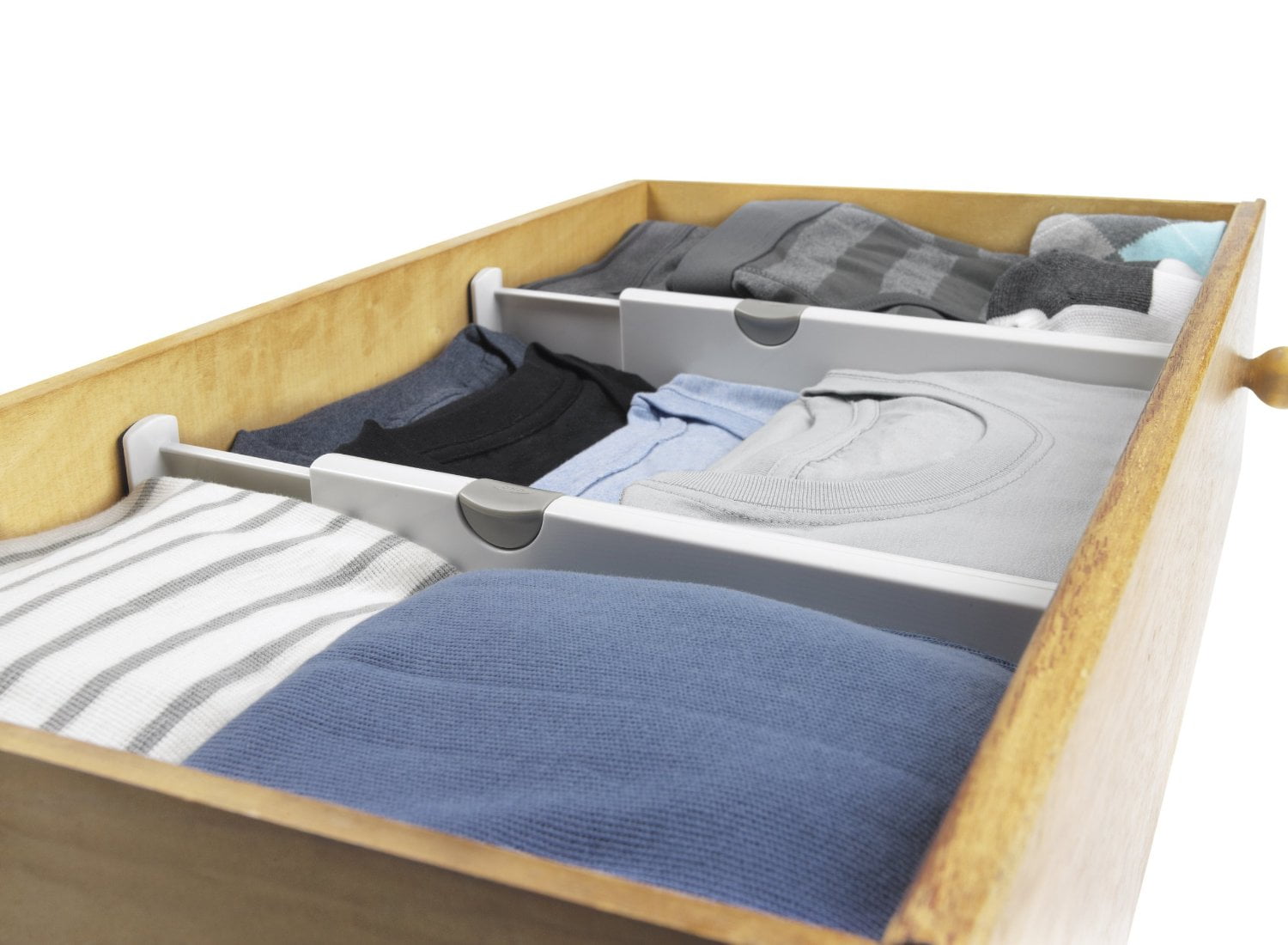 Click to play video. Plastic Expandable Dresser Drawer Dividers In White 13 25 X 1 2 5 Set Of 4 By Mdesign 2020 Kitchen Junk Organizing. The OXO Good Grips Expandable Dresser Drawer Dividers slide from 11 to 17 in.