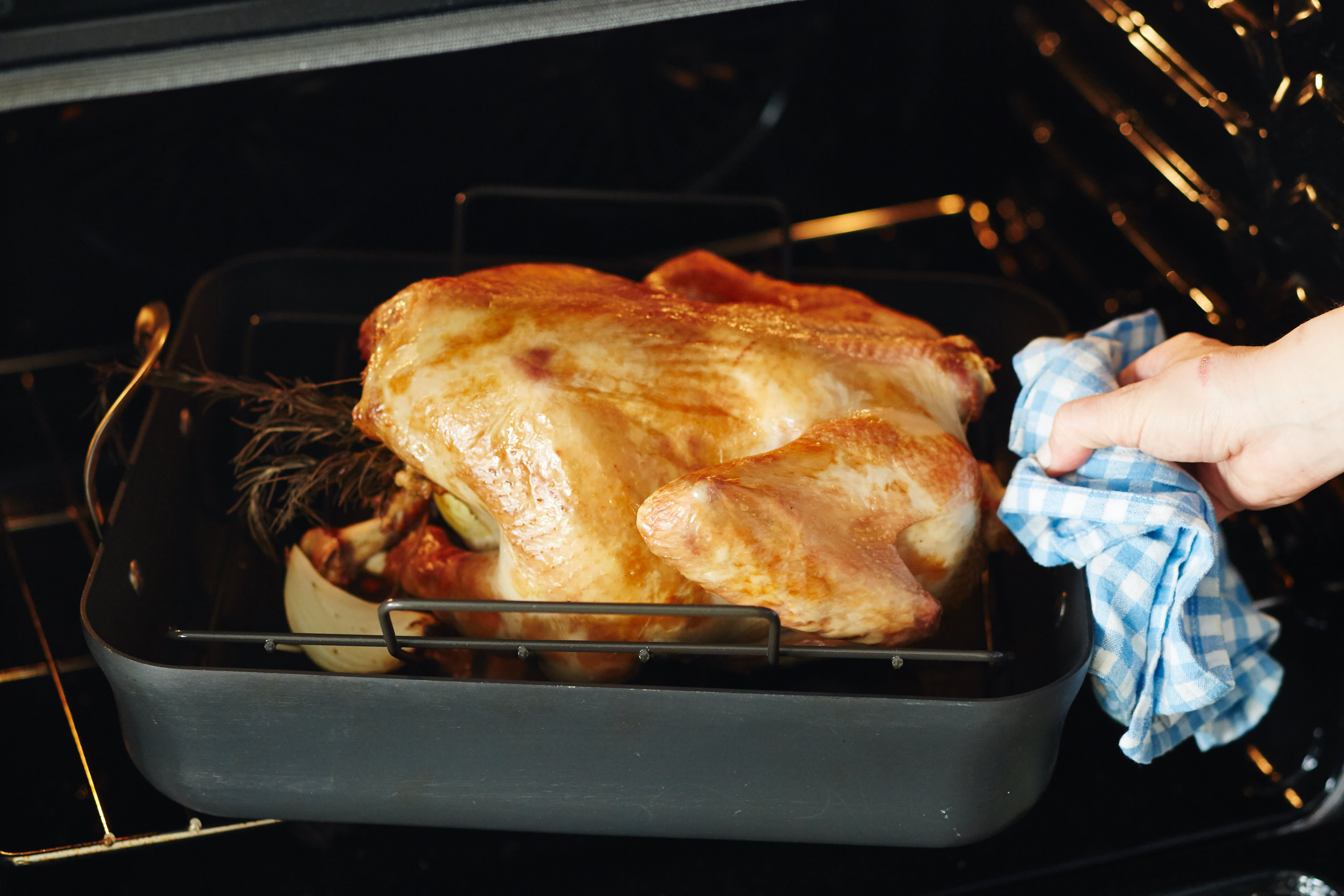 Another important step of preparation is to separate the skin from the breast. Place the turkey in the oven and baste it every 30 minutes using the stock. Roast for 2 hours if 18 pounds or less 2-12 hours if between 18-21 pounds and 3 hours if its 21 pounds or more.