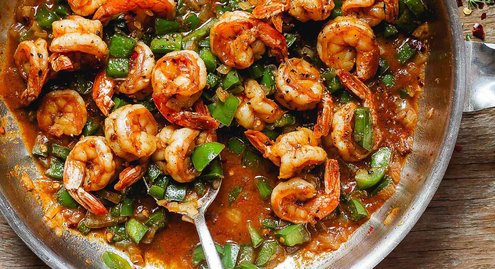 Spicy Shrimp Recipe With And Green Peppers Skillet Shrimp Recipe Eatwell101
