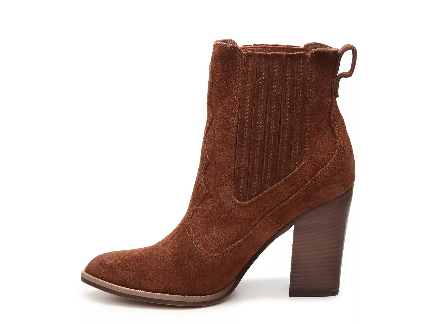 Tonal goring and topstitching amp up the Western attitude of a pointy-toe suede bootie set on a chunky stacked heel. Find the perfect pair of stylish Dolce Vita boots and ankle boots to take you everywhere. Free shipping on many items.