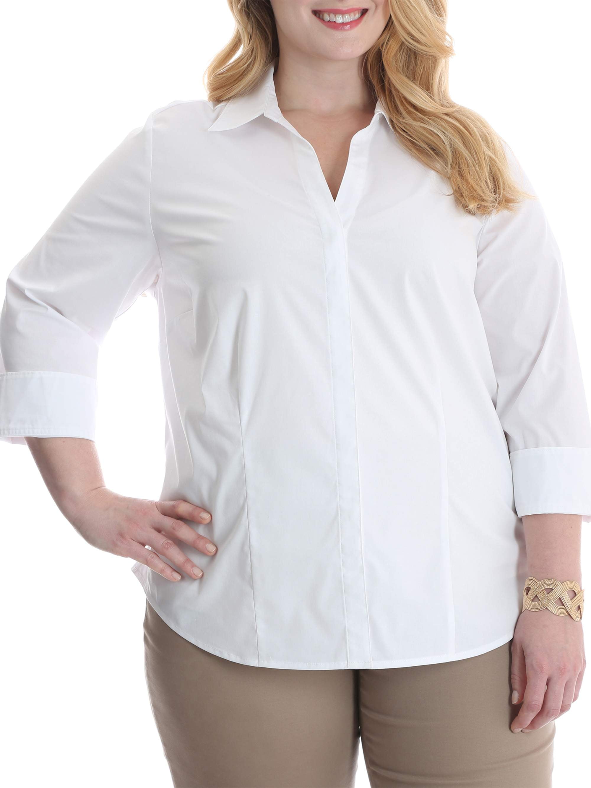 Amazon Com Lee Riders Women S Plus Classic 3 4 Sleeve Wrinkle Resistant Career Shirt White 2x Clothing