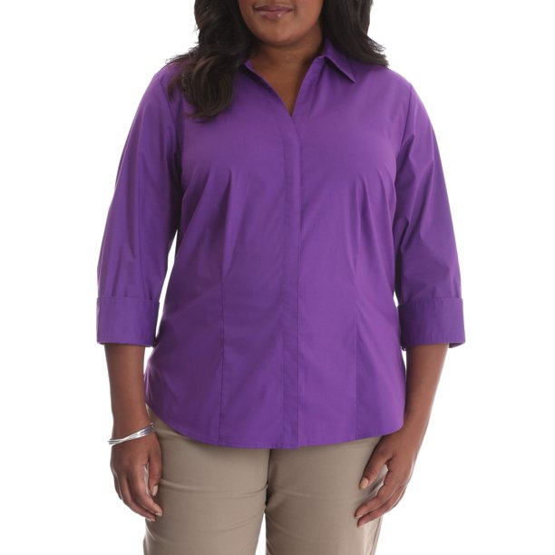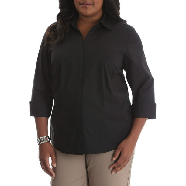 Lee Riders Women S Plus 3 4 Sleeve Classic Career Shirt Walmart Com Walmart Com