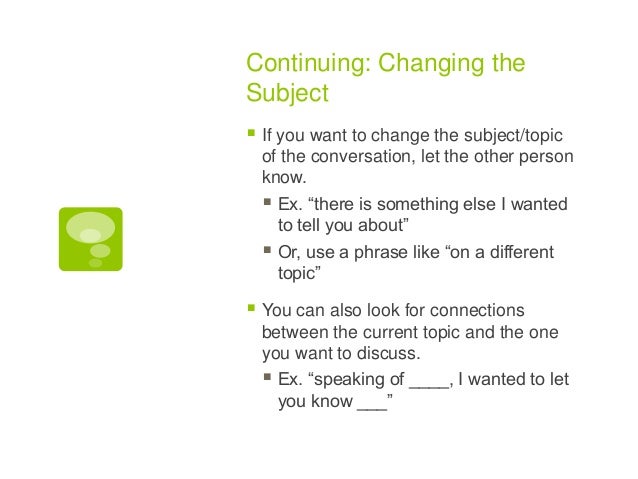 Click on this to show the conversation options. One of the best ways to deal with uncomfortable topics is to be prepared with a list of conversation starters about topics you dont mind discussing. Lets review the four strategies I recommend for changing the subject or conversation topic in English.