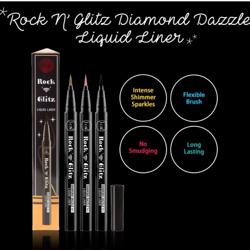 599 3 Color Options 2. Rock n glitz diamond dazzle liquid liner Quick View Color RG101 Sable Black Shimmer RG102 Rosy Glam RG103 Frozen Island RG104 Purple Crystal RG105 Golden Boy RG106 Dazzling Brown RG107 Platinum Pop RG108 Tuxedo Mask. ROCK N GLITZ DIAMOND DAZZLE LIQUID LINER.