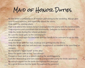 Maid of honor speeches have to be written with a lot of care and thought. Maids and matrons of honor have the same responsibilitiesthe only difference is a matron of honor is married while a maid of honor. Typically the maid of honor leads the bridesmaids in planning a bridal shower and often a bachelorette party.